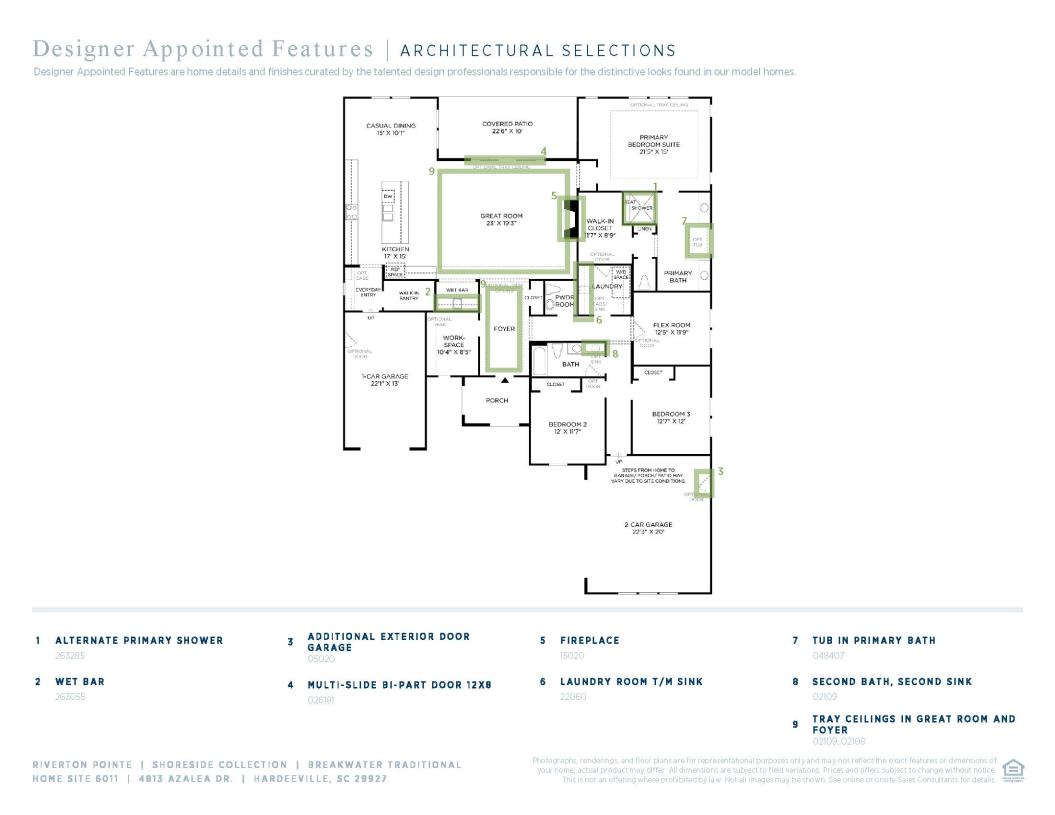 The Breakwater offers the perfect space for every moment. From its bright foyer with adjacent workspace to its expansive great room with views to the large covered patio to its secluded flex room, the Breakwater is elegantly versatile. The well-appointed kitchen is central to a spacious casual dining area, and features a large center island with breakfast bar, plenty of counter and cabinet space, and roomy walk-in pantry. The graceful, private primary bedroom suite is enhanced by a sizable walk-in closet and lovely primary bath with dual vanities, large luxe shower, linen storage, and water closet. Secondary bedrooms feature ample closets and shared hall bath. Additional highlights include convenient powder room, everyday entry, centrally located laundry, and additional storage.