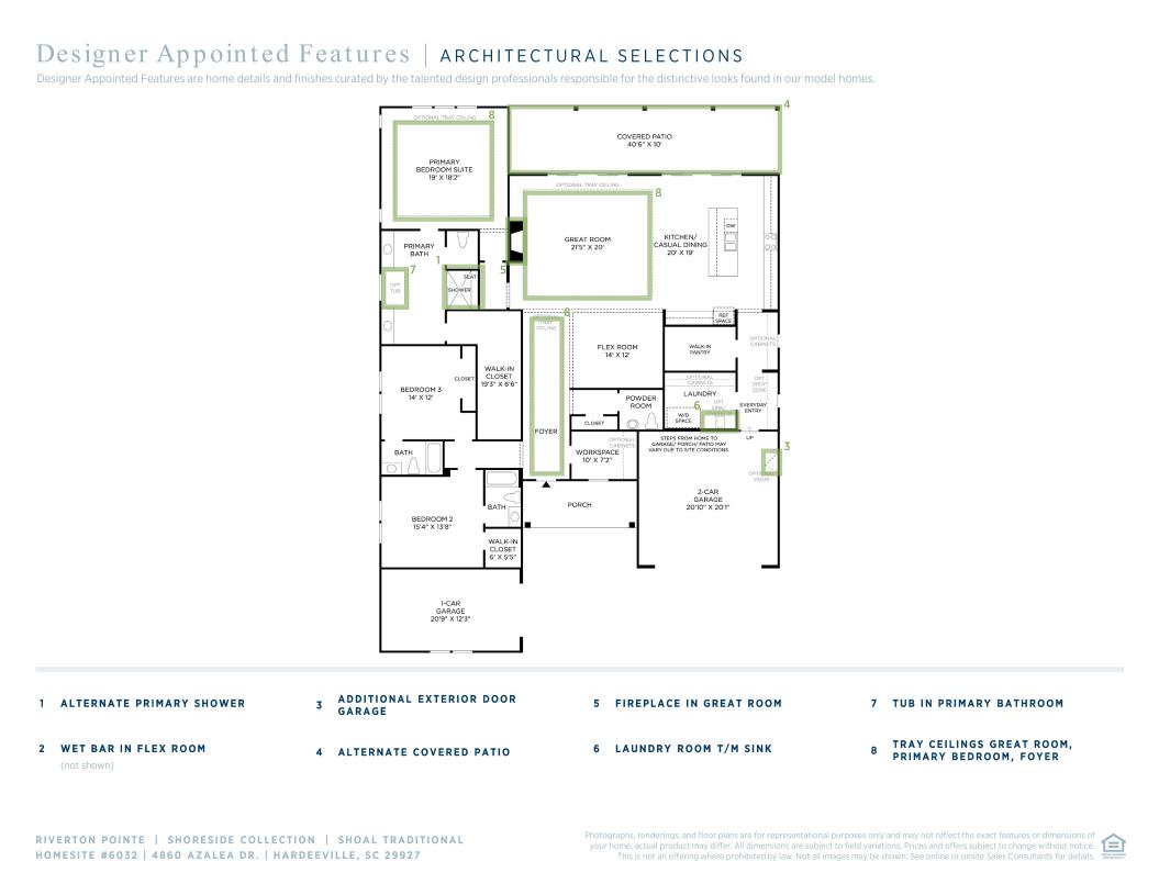 The Shoal's soaring foyer hall flows into the expansive open concept great room and flex room, with views to the desirable large rear covered patio. The well-appointed kitchen overlooks a bright casual dining area, and is enhanced by a large center island with breakfast bar, plenty of counter and cabinet space, and sizable walk-in pantry. The palatial primary bedroom suite is complemented by a stunning walk-in closet and elegant primary bath with dual vanities, large luxe shower, and private water closet. Secondary bedrooms feature ample closets and private baths. Additional highlights include a secluded workspace, convenient powder room and everyday entry, centrally located laundry, and additional storage.