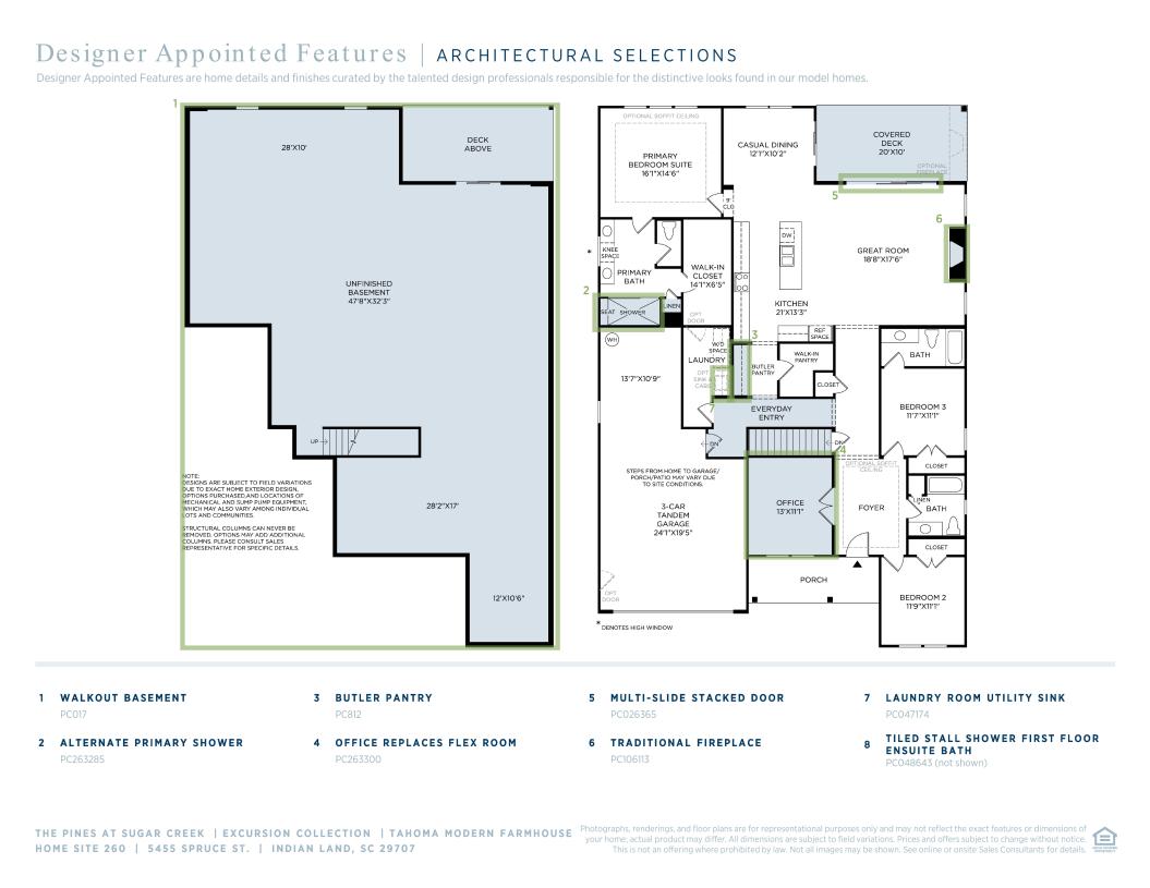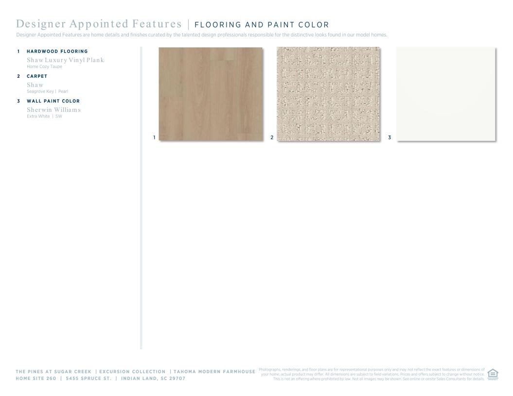 The beautifully crafted Tahoma showcases flexible living spaces with luxury features. An airy foyer and flex room seamlessly flows into the expansive great room with access to a large patio. Open to a bright casual dining area, the expertly designed kitchen is highlighted by a large center island with breakfast bar, plenty of counter and cabinet space, as well as an ample walk-in pantry. The gorgeous primary bedroom suite is enhanced by a generous walk-in closet and an elegant primary bath complete with dual vanities, a large luxe shower with seat, linen storage, and a private water closet. Sizable secondary bedrooms, one with a private bath and one with a shared hall bath, are conveniently located off the foyer and feature roomy closets. The Tahoma also offers easily accessible laundry, convenient everyday entry, and additional storage throughout.