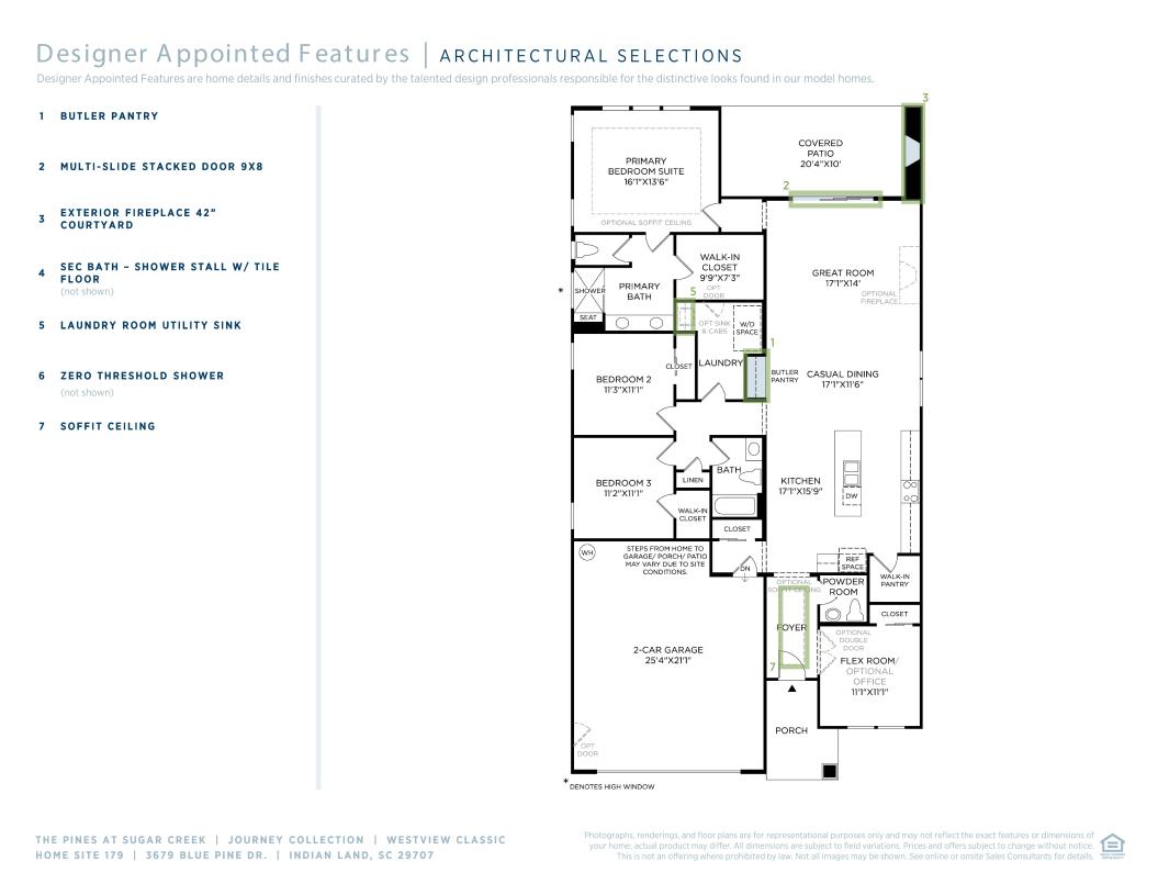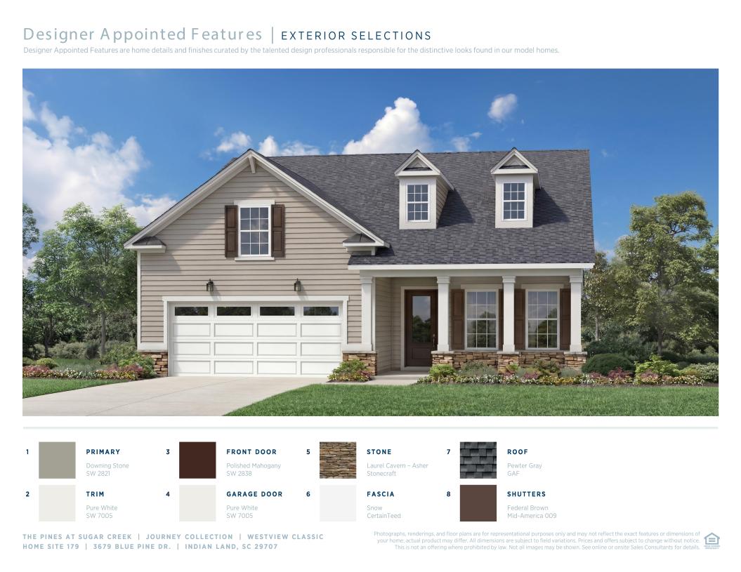The Westview is ideally designed with the entertainer in mind. The gracious foyer flows past a large flex room and then onto the well-designed kitchen, complemented by a large center island with breakfast bar, plenty of counter and cabinet space, and an ample walk-in pantry. Perfect for easy entertaining, kitchen overlooks the casual dining area, great room, and covered patio beyond. The gracious primary bedroom suite is highlighted by a sizable walk-in closet and an appealing primary bath with a dual-sink vanity, a large luxe shower with seat, and a private water closet. Secondary bedrooms feature ample closets and shared hall bath. Additional highlights include a generous flex room, an easily-accessible laundry, a convenient powder room, and plenty of additional storage.