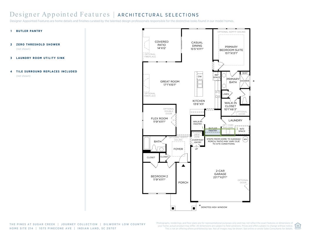 From the moment you enter, the Dilworth makes an impression. The airy foyer and hallway reveal a sizable flex room, and views to the expansive great room and casual dining area with covered patio. Highlighting the well-appointed kitchen are a large center island with breakfast bar, plenty of counter and cabinet space, a roomy walk-in pantry, and convenient workspace. The superb primary bedroom suite is complemented by a generous walk-in closet and a serene primary bath with a dual-sink vanity, a large luxe shower with seat, linen storage, and a private water closet. The secondary bedroom features a sizable closet with shared hall bath. Additional highlights include a convenient everyday entry, a centrally located laundry, and plenty of additional storage.