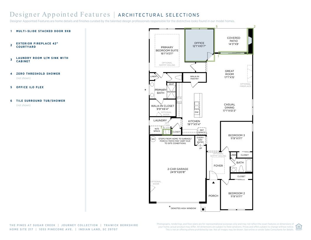 With the kitchen at the heart of the home, the Trawick leaves a lovely impression. The splendid great room and casual dining area are central to the bright foyer, desirable covered patio, and well-designed kitchen offering a large center island with breakfast bar, plenty of counter and cabinet space, and a sizable walk-in pantry. Defining the secluded primary bedroom suite are a spacious walk-in closet and a splendid primary bath with a dual-sink vanity, a large luxe shower with seat, linen storage, and a private water closet. Secondary bedrooms feature ample closets and shared hall bath. Additional highlights include a generous flex room, a convenient everyday entry, an easily-accessible laundry, and plenty of additional storage.