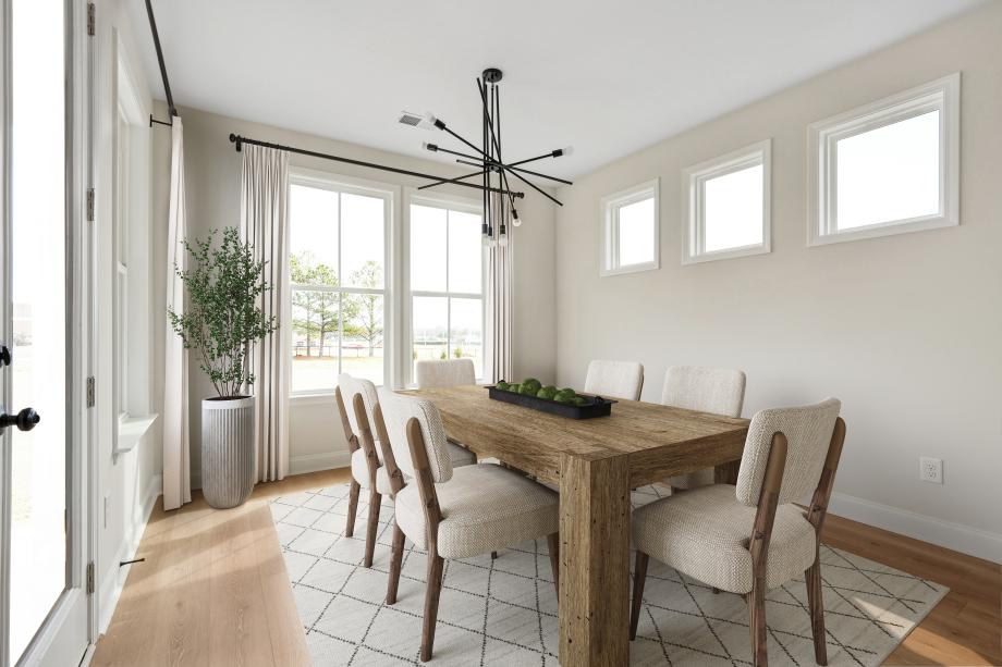 The Frasier offers a beautiful open floor plan for modern living. A spacious office is adjacent to the airy foyer, which offers views to the spacious great room. Adjacent to a charming casual dining area with rear yard access, the well-appointed kitchen offers an oversized center island with a breakfast bar, plenty of counter and cabinet space, an ample walk-in pantry, and a butler pantry with a pass-through to the dining room. The gorgeous primary bedroom suite is enhanced by dual walk-in closets and a gracious primary bath with dual vanities, a luxe shower, linen storage, and a private water closet. The secondary bedrooms, two with a shared bath with a separate vanity area and one with a shared hall bath, feature walk-in closets. Additional highlights include a versatile first-floor bedroom with a walk-in closet and a private bath, a generous loft, easily accessible second-floor laundry, a powder room, a drop zone, and ample additional storage.