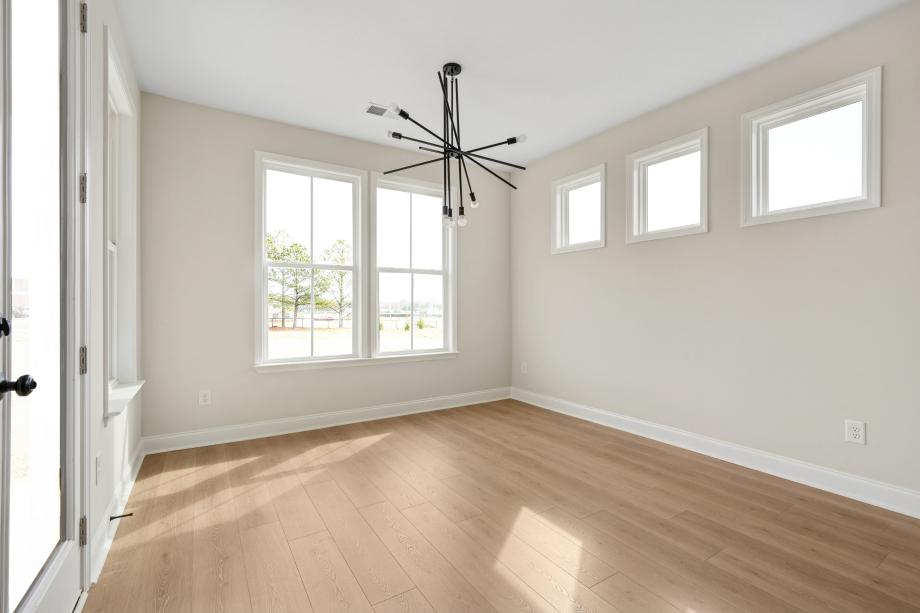 The Frasier offers a beautiful open floor plan for modern living. A lovely dining room is adjacent to the airy foyer, which offers views to the spacious great room. Adjacent to a charming casual dining area with rear yard access, the well-appointed kitchen offers an oversized center island with a breakfast bar, plenty of counter and cabinet space, an ample walk-in pantry, and a butler pantry with a pass-through to the dining room. The gorgeous primary bedroom suite is enhanced by dual walk-in closets and a gracious primary bath with dual vanities, a luxe shower, linen storage, and a private water closet. The secondary bedrooms, two with a shared bath with a separate vanity area and one with a shared hall bath, feature walk-in closets. Additional highlights include a versatile first-floor bedroom with a walk-in closet and a private bath, a generous loft, easily accessible second-floor laundry, a powder room, a drop zone, and ample additional storage.