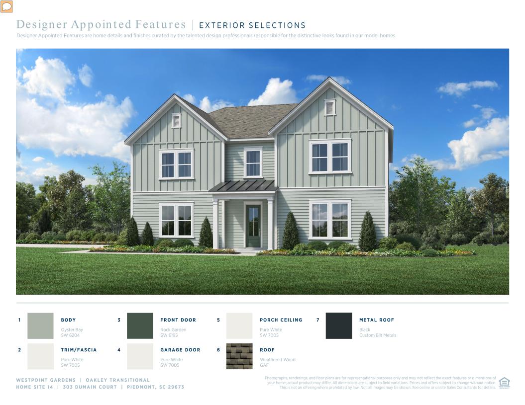 The Oakley offers a spacious and versatile floor plan. The inviting foyer flows past a large flex room into the airy great room and casual dining area with rear yard access. The well-appointed kitchen features a large center island with breakfast bar, plenty of counter and cabinet space, and a walk-in pantry adjacent to a roomy prep kitchen area. Highlighting the marvelous primary bedroom suite is expansive airy walk-in closet and a serene primary bath with dual vanities, a luxe shower, linen storage, and a private water closet. Of the three secondary bedrooms, two offer walk-in closets, one has a private bath, and two share a hall bath with a separate vanity area. Additional highlights include a generous loft, easily accessible second-floor laundry, an everyday entry with drop zone, a powder room, and extra storage throughout.