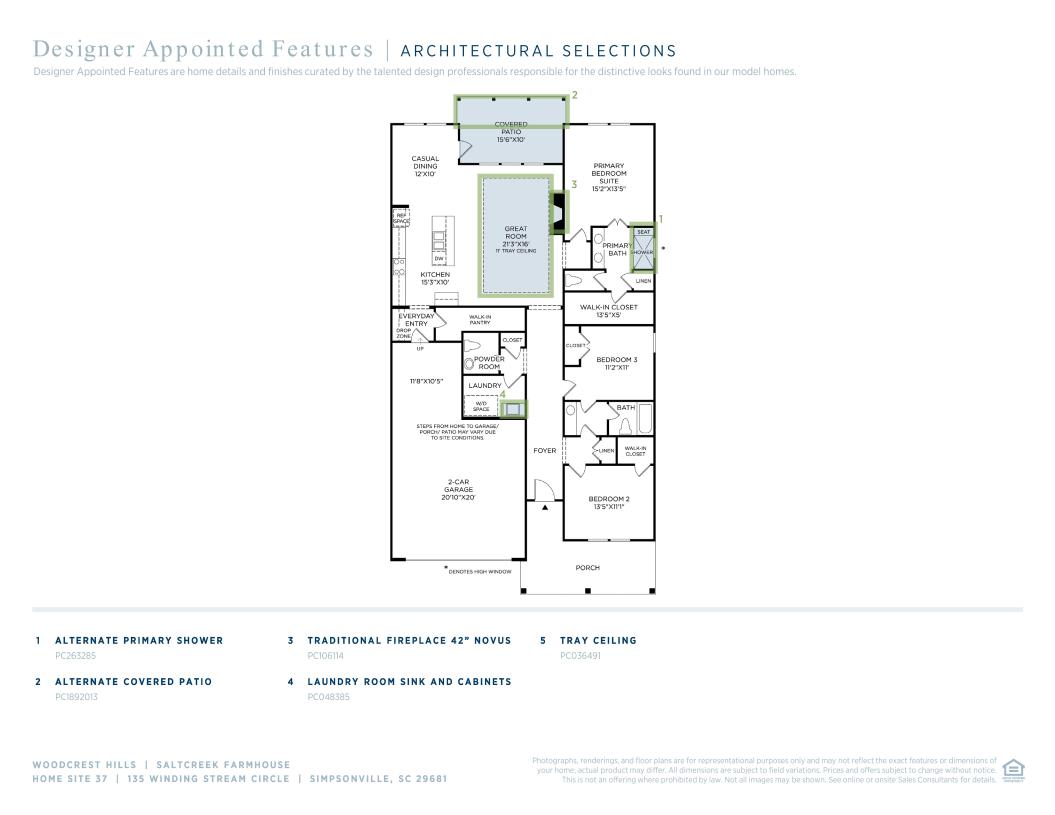 The Saltcreek home design features an open floor plan that creates a seamless flow in the main living area. The elegant foyer leads to a spacious great room and a bright casual dining area with access to the lovely covered patio. The well-appointed kitchen features a large center island with breakfast bar, ample cabinet space, and a walk-in pantry. Retire to the primary bedroom highlighted by a roomy walk-in closet and a relaxing primary bath with a dual-sink vanity, a luxe shower, linen storage, and a private water closet. Two generous secondary bedrooms—one with a walk-in closet—have access to a full hall bath with a separate vanity area. Additional highlights include an everyday entry with drop zone, centrally located laundry, a powder room, and extra storage throughout.