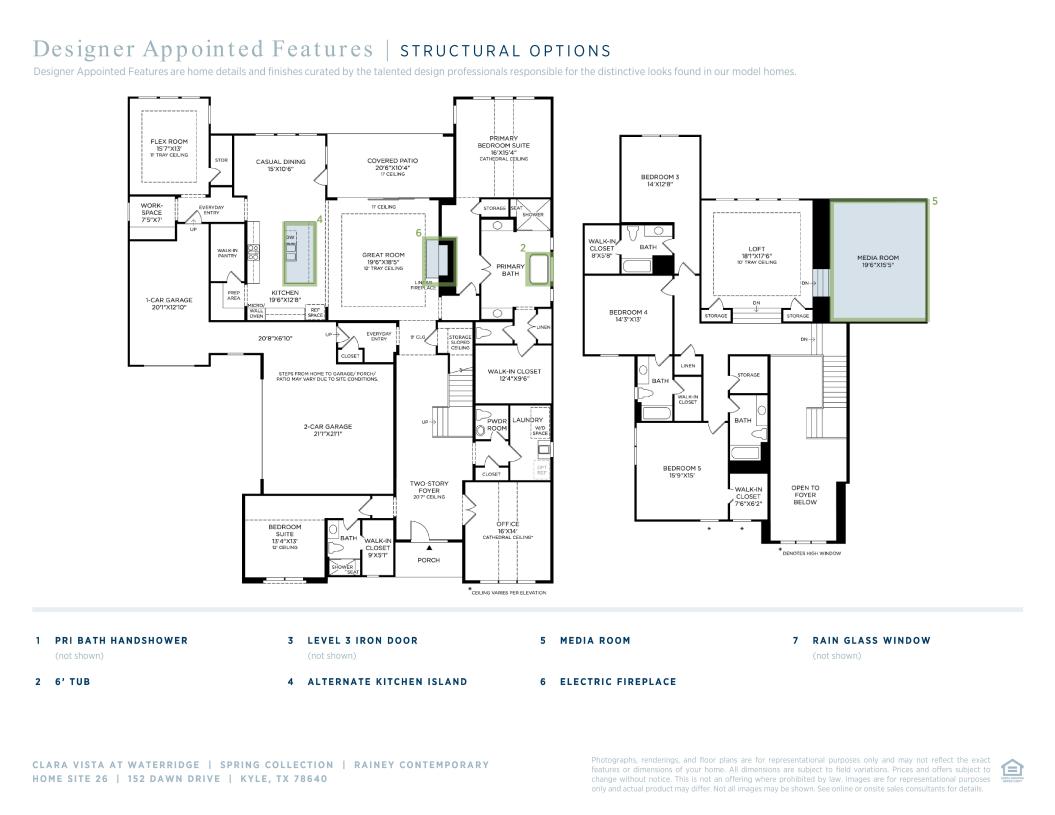 An elegant two-story foyer welcomes all who enter the Rainey, giving way to the stunning open-concept main living level. A sophisticated great room with a tray ceiling opens onto a desirable covered patio via sliding glass doors. Overlooking the casual dining area and the great room is an impressive kitchen that features plenty of counter space, an oversized center island with breakfast bar, and a walk-in pantry. The stunning primary bedroom is enhanced by a cathedral ceiling, a spacious walk-in closet, and a spa-like primary bath with dual vanities, a serene soaking tub, a luxe shower with seat, linen storage, and a private water closet. Central to an airy loft are secondary bedrooms offering walk-in closets. Two of these secondary bedrooms feature private baths, and the other has access to a shared full hall bath. Other desirable features include a first-floor bedroom with a walk-in closet and a private bath, an office, a flex room, an everyday entry, a workspace, and a powder room.