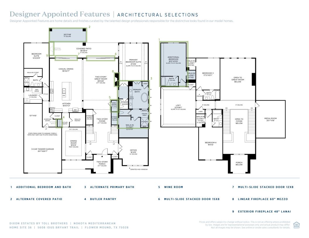 The Nokota home design is a masterpiece of contemporary architecture with practicality for day-to-day living. An inviting two-story foyer welcomes all into the large open-concept great room, magnified by its soaring ceiling and warmed by an elegant fireplace. A formal dining room adds to the sense of luxury as does an office for those requiring private workspace at home. Tucked away on the main floor, the primary suite showcases dual vanities, a freestanding tub, luxurious shower and sizeable walk-in closet in its bath area. Upstairs resides secondary bedroom suites along with a spacious media room and loft space perfect for relaxation or playtime activities. With first-floor laundry facilities, this versatile family residence is crafted around easy-living.