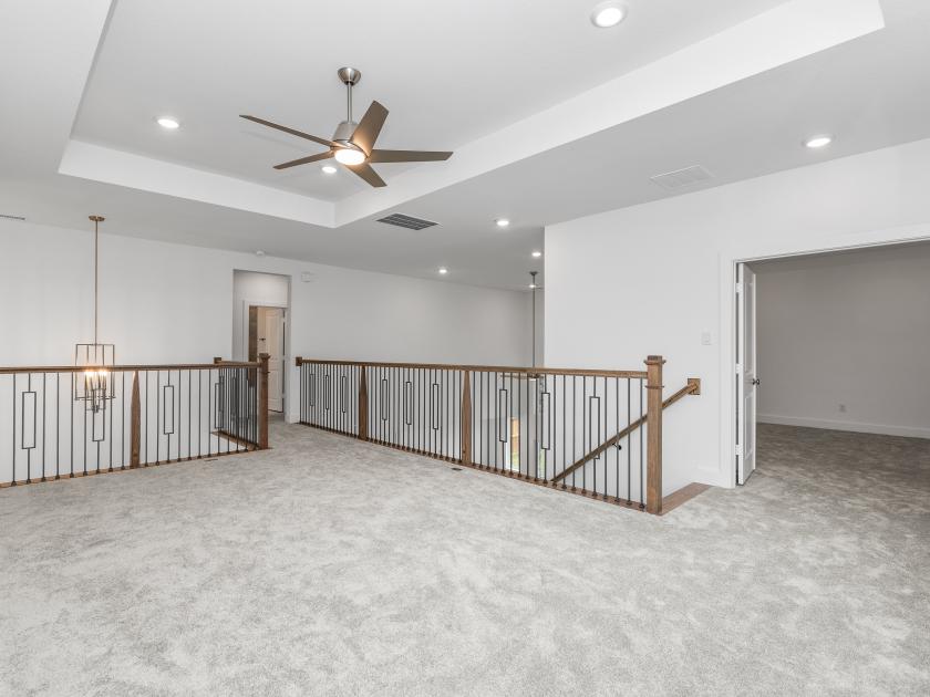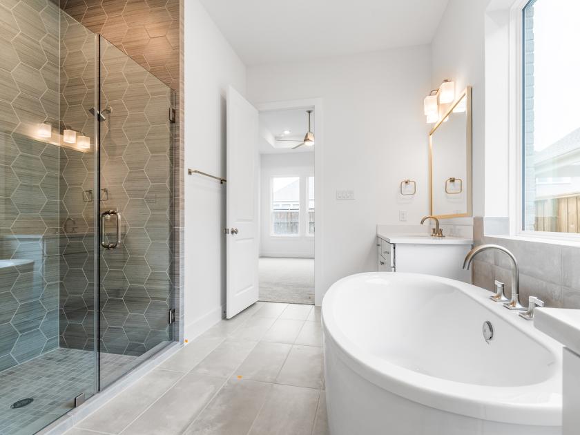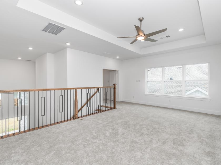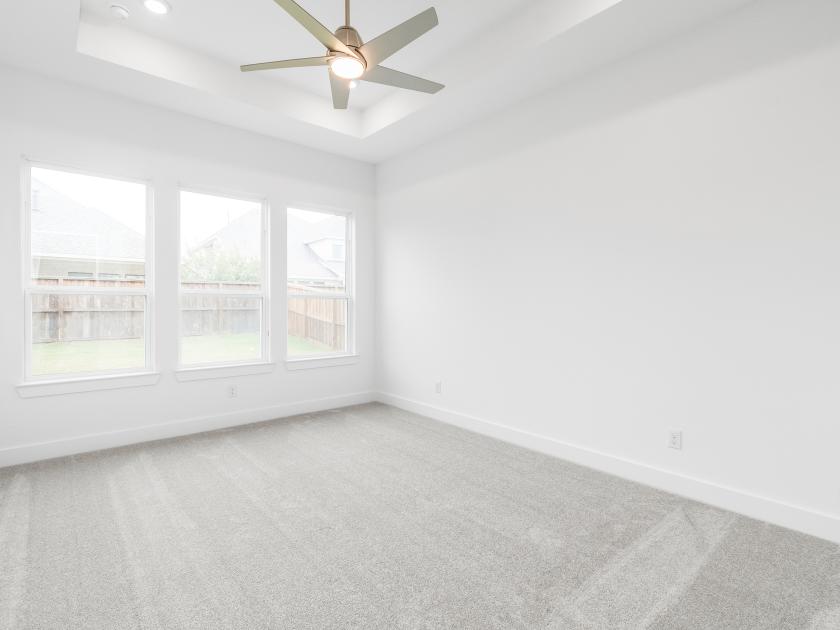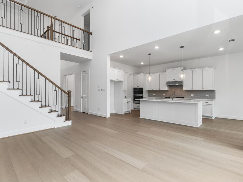 The Bautista showcases timeless elegance with its painted brick exterior and a grand two-story foyer that opens to a light-filled great room and covered patio. The open-concept layout connects seamlessly to a casual dining area and a chef-inspired kitchen featuring a large center island, walk-in pantry, and abundant cabinetry. The first-floor primary suite is a private retreat with a tray ceiling, spacious walk-in closet, and spa-like bath with soaking tub, dual vanities, and deluxe shower. A secondary bedroom and full bath are also located on the main level. Upstairs, beautifully crafted oak stairs lead to a spacious loft, media room, and an additional bedroom with a walk-in closet and shared bath—perfect for guests or family. With thoughtful upgrades, generous storage, and a layout designed for both comfort and style, the Bautista is ideal for modern living with a timeless touch.