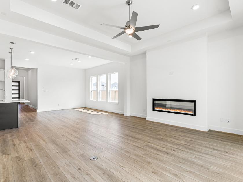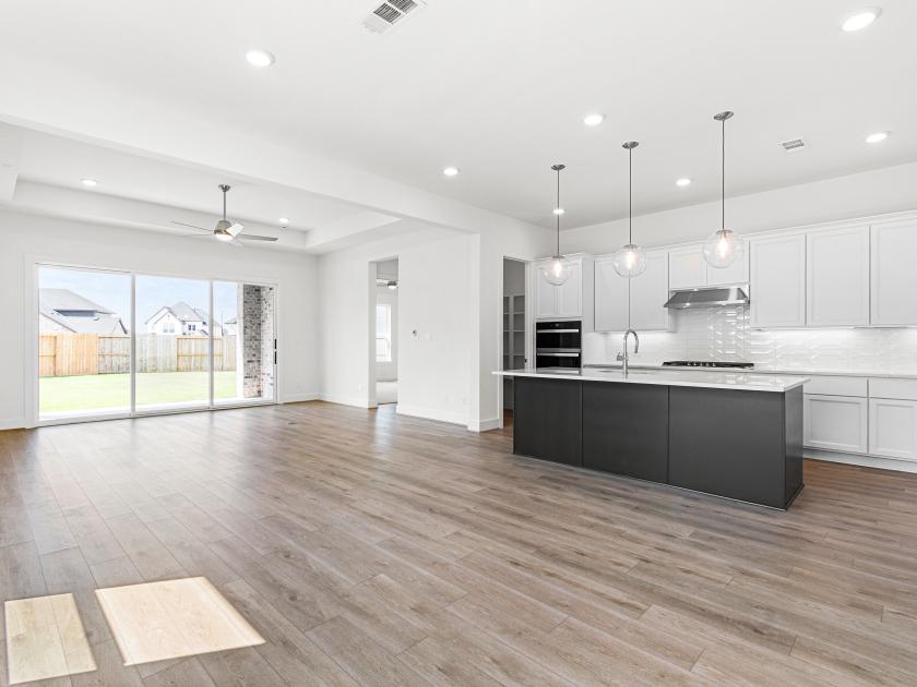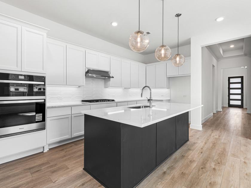 Experience modern luxury redefined in this stunning 4-bedroom, 3-bathroom home with 2,150 square feet of open-concept living space. From its sleek modern elevation to designer finishes throughout, every detail is thoughtfully curated for style and functionality. Tray ceilings, including a 14-foot entry foyer, add depth and elegance, while natural light fills the spacious interior. The chef’s kitchen features upgraded stainless steel appliances, designer countertops, and custom cabinetry, opening to the main living area and a 12-foot sliding glass door that leads to an expansive backyard—perfect for entertaining or future outdoor upgrades. The spa-inspired primary suite offers a large walk-in shower, dual vanities, and premium tile work. Located in a desirable community with easy access to I-10, Westpark Tollway, top schools, shopping, and dining, this home delivers comfort, convenience, and contemporary style.