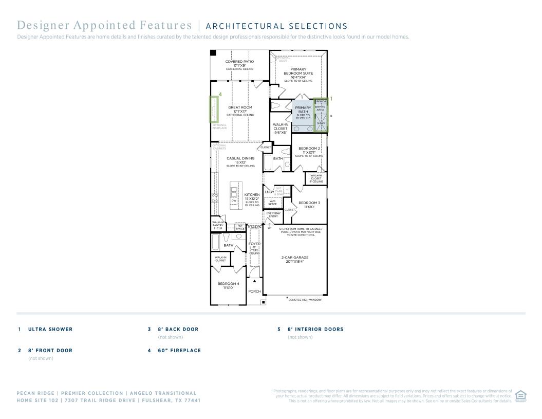 The Angelo's inviting covered porch and elegant foyer with tray ceiling open onto the soaring great room and large covered patio with cathedral ceilings. The well-designed kitchen overlooks a bright casual dining area, and is enhanced by a large center island with breakfast bar, plenty of counter and cabinet space, and roomy walk-in pantry. The charming primary bedroom suite is highlighted by a generous walk-in closet and deluxe primary bath with dual-sink vanity, large soaking tub, luxe shower, and private water closet. Secondary bedrooms feature ample closets and shared full hall bath. Additional highlights include a versatile office and another full hall bath off the foyer, centrally located laundry, and additional storage.