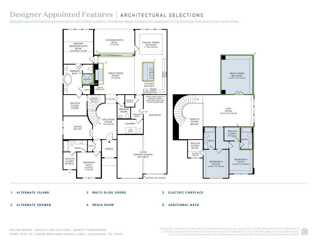 A grand entrance awaits in the Hardy’s soaring two-story foyer with grand circular staircase opening up to the expansive great room. Featuring a large center island with breakfast bar, the well-designed kitchen overlooks the bright casual dining area with rear yard access. The primary bedroom suite features an impressive walk-in closet and spa-like primary bath with dual-sink vanity, large luxe shower with seat, and private water closet. A spacious office and a secondary bedroom with ample closet and shared bath complete the first floor. Secluded on the second floor overlooking a generous loft, additional bedrooms feature sizable closets and a shared hall bath. Additional highlights include a convenient everyday entry, centrally located laundry, and additional storage.