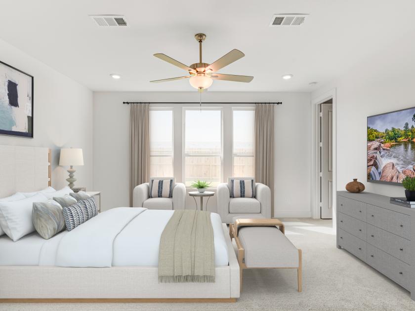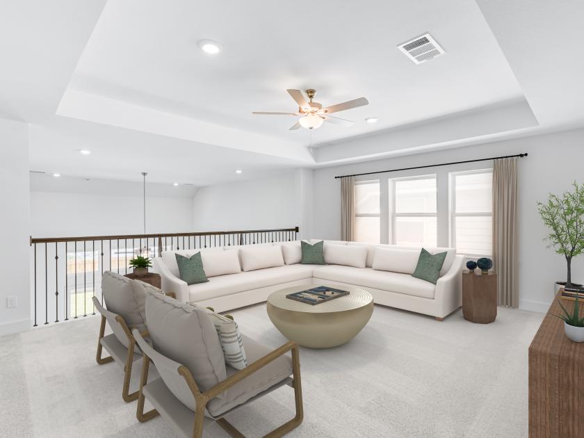 Modern luxury meets elegant design in this stunning quick move-in home. Central to two guest bedrooms is the spacious loft space that boasts the home's open-concept floor plan. French doors and elongated windows in the office create an open, yet private, space. Backyard areas provide ample space for a deck or patio to be installed, creating the perfect spot for activities, grilling, and outdoor entertaining. This home has room for everyone in the family and then some! Explore everything this exceptional home has to offer and schedule your appointment today.