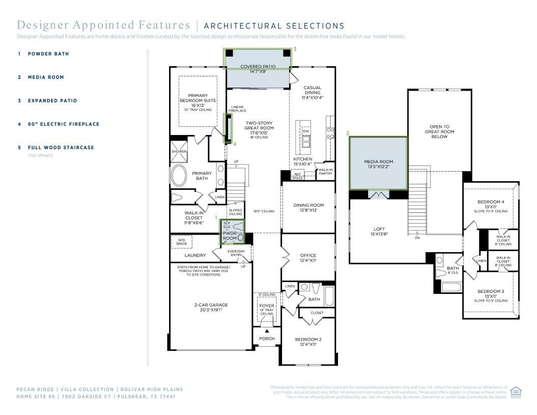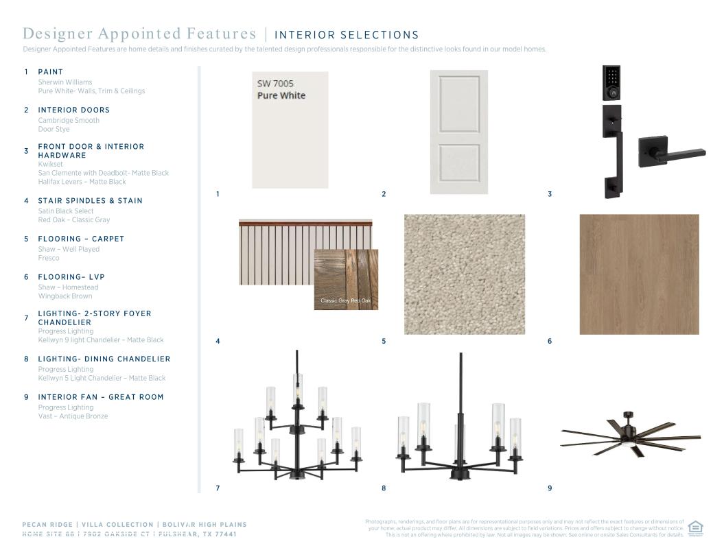 Stunning urban styling. The Bolivar's welcoming covered porch entry and inviting foyer flow past the spacious office and elegant dining room, revealing the soaring great room and desirable covered patio beyond. The well-equipped gourmet kitchen overlooks a bright casual dining area with patio access, and is highlighted by a large center island with breakfast bar, plenty of counter and cabinet space, and ample walk-in pantry. The beautiful primary bedroom suite is enhanced by an elegant tray ceiling, enormous walk-in closet, and deluxe primary bath with dual-sink vanity, large soaking tub, luxe shower, and private water closet. Secluded on the second floor, the secondary bedrooms feature walk-in closets and shared hall bath, overlooking a generous loft. Additional highlights include a desirable first floor bedroom suite with closet and shared hall bath, convenient everyday entry, centrally located laundry, and additional storage.