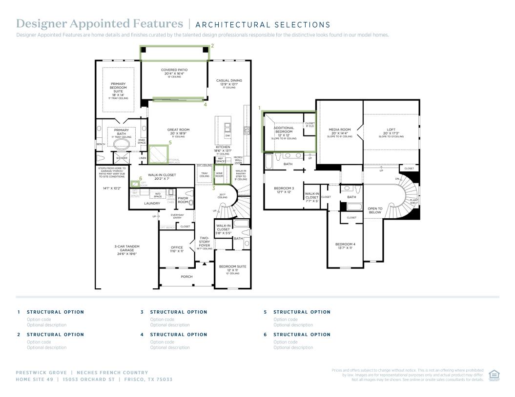 Welcoming you from the moment you open the door, the Neches' two-story foyer flows past the graceful curved stairs, opening onto the expansive great room with views to a luxurious covered patio. Overlooking a bright casual dining area, a well-appointed gourmet kitchen features a large center island with a breakfast bar, plenty of counter and cabinet space, and a generous walk-in pantry. The primary bedroom features a gorgeous tray ceiling, a massive walk-in closet, and a spa-like primary bath with dual vanities, a large soaking tub, a relaxing shower, and a private water closet. Central to a spacious loft with an adjacent media room, two secondary bedrooms feature sizable closets and access to two full baths. Additional highlights include a versatile first-floor bedroom with ample walk-in closet space and a private full bath, a secluded office, a convenient powder room, an everyday entry, a three-car tandem garage, and additional storage.