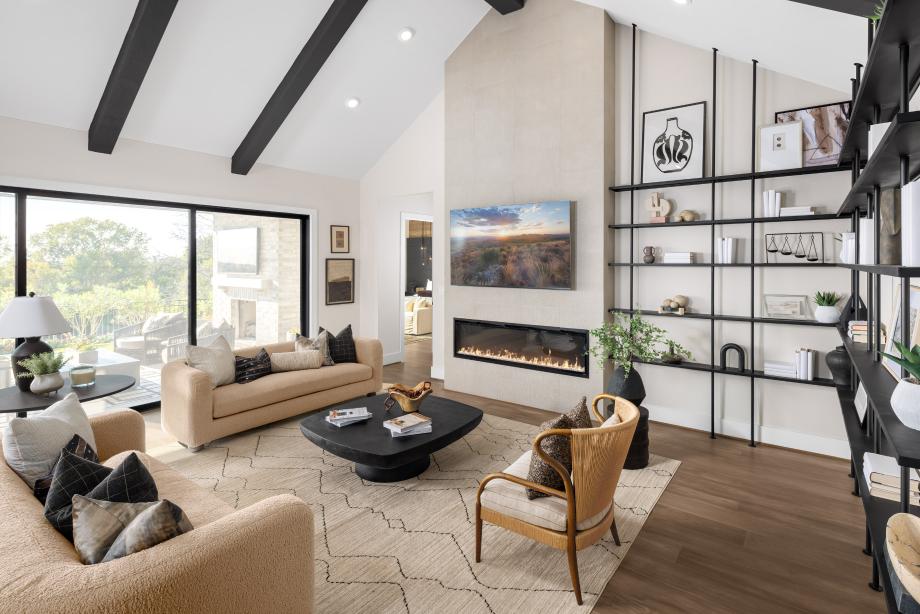 Great rooms with vaulted ceilings and cozy electric fireplaces
