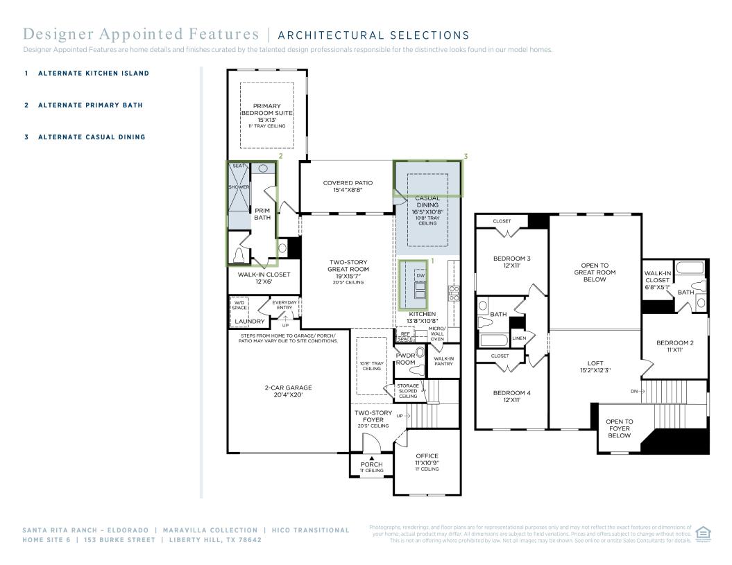 The Hico welcomes you with a dramatic two-story foyer that opens into an equally impressive two-story great room, creating a bright, airy atmosphere. The open-concept layout connects the casual dining area—highlighted by a tray ceiling—with a well-designed kitchen that includes a center island and walk-in pantry. Just beyond, a covered patio extends the living space outdoors for fresh-air dining and relaxing. The main-floor primary suite features a tray ceiling, a spacious walk-in closet, and a spa-like bath with dual vanities, a soaking tub, a luxe shower, and a private water closet. Upstairs, three secondary bedrooms—two sharing a hall bath and one with a private bath—offer ample closet space and access to a central loft that overlooks the great room and foyer below. Additional features include a dedicated office, a convenient powder room, a main-level laundry area, and an everyday entry.