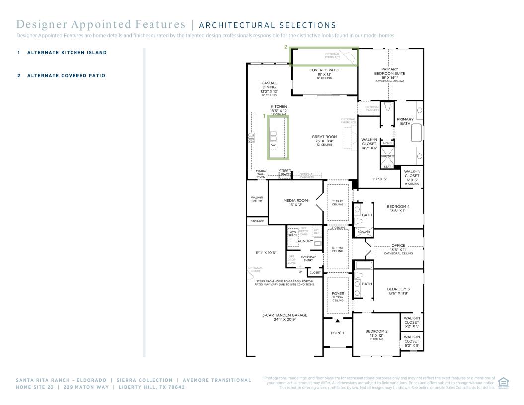 The Avemore is beautifully designed with a desirable single-level, open concept floor plan that fits every lifestyle. The stunning great room overlooks an elegant extended foyer with tray ceilings and features alluring views of the expansive covered patio. A bright casual dining area is adjacent to the well-designed kitchen complete with a large center island with breakfast bar, ample counter and cabinet space, and a sizable walk-in pantry. A majestic cathedral ceiling enhances the gracious primary bedroom suite, offering a spacious walk-in closet and a marvelous primary bath with dual vanities, a large soaking tub, a luxurious shower with seat, and a private water closet. Secondary bedrooms, two with a shared hall bath and one with a private bath, feature walk-in closets and are conveniently located off the foyer. A secluded office and media room are also featured in the Avemore, with additional highlights including easily accessible laundry, everyday entry, and ample additional storage.