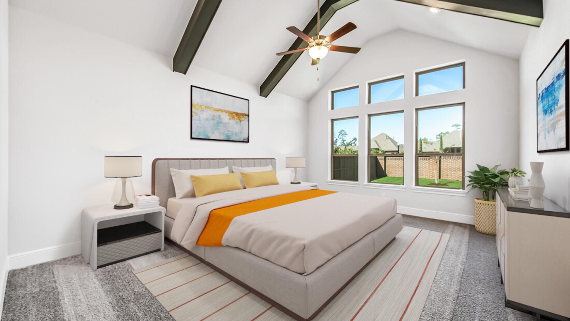 Luxurious living and entertaining. The Emery's dynamic covered entry leads to an elegant foyer with tray ceiling, offering beautiful views to the formal dining room, spacious great room with vaulted ceiling, and desirable covered patio beyond. The well-equipped kitchen features an expansive center island with wraparound breakfast bar, ample counter and cabinet space, convenient walk-in pantry, and adjoining bright casual dining area. The gorgeous primary bedroom suite is complete with a beautiful vaulted ceiling, spacious walk-in closet, and deluxe primary bath with dual vanities, large soaking tub, luxe glass-enclosed shower with seat, linen closet, and private water closet. The generous secondary bedrooms each feature roomy walk-in closets, two with shared bath, one with access to a full hall bath. Additional highlights include a versatile office off the foyer, a desirable flex space adjacent to the casual dining area, and a centrally located laundry.
