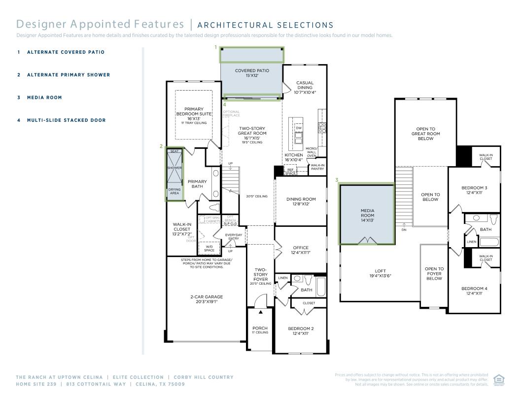 The Corby home design blends lively gathering spaces with quiet retreats. An inviting two-story foyer leads guests past a dining room into a stunning two-story great room that flows seamlessly into the kitchen, casual dining area, and covered patio. Designed for culinary enthusiasts, the kitchen boasts a large center island with breakfast bar, ample counter and cabinet space, and a walk-in pantry. Private and serene, the primary bedroom is enhanced by a tray ceiling, a spacious walk-in closet, and a tranquil bathroom featuring a dual-sink vanity, a lavish shower with seat, linen storage, and a private water closet. Additional first-floor features include an office, a full hall bath, a secondary bedroom, and a conveniently located laundry room. Upstairs are two lovely secondary bedrooms with walk-in closets, a full hall bath, and a versatile loft space ideal for a variety of uses.