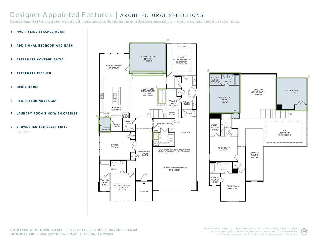 The Randolf offers an impressive blend of style and functionality. A grand two-story foyer leads into the stunning two-story great room that is accessible to a casual dining space and the covered patio. Overlooking the living space is the well-appointed kitchen, boasting a large center island and a spacious walk-in pantry. The main floor primary bedroom suite is complete with a tray ceiling, an expansive walk-in closet, and a luxurious private bath with dual vanities, a spa-like shower with seat, a freestanding tub, and a private water closet. Upstairs, two secondary bedrooms, each with a private bath and walk-in closet, are central to a versatile loft area. Another bedroom suite is conveniently located off the foyer, featuring a walk-in closet and private bath. Additional highlights include a sizable office, easily accessible laundry, a powder room, and a convenient everyday entry.
