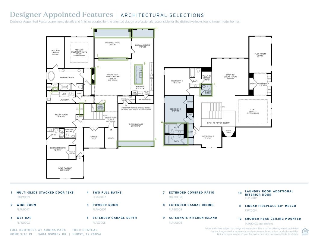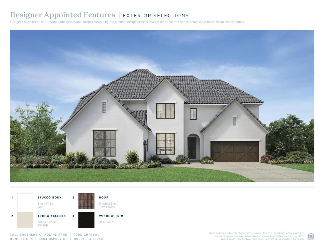 The perfect blend of open living area and quiet corners, the Todd offers ample space for everything that matters. The soaring two-story foyer reveals the spacious great room and desirable large covered patio, accessible to the bright casual dining area and well-designed kitchen complete with a large center island with breakfast bar, plenty of counter and cabinet space, and a sizable walk-in pantry. The beautiful primary bedroom suite is highlighted by an impressive tray ceiling, an expansive walk-in closet, and a magnificent primary bath with dual-sink vanity, a large soaking tub, a luxe shower, linen storage, and a private water closet. Central to a generous loft with adjacent workspace and flex room, secondary bedrooms, one with private bath and two with shared bath with separate vanity areas, feature walk-in closets. Additional highlights include a desirable first-floor bedroom suite with walk-in closet and private bath, a sizable media room, and an ample office.