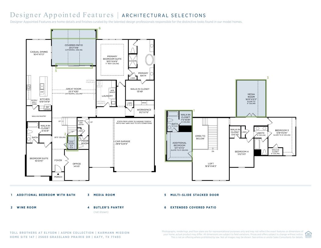 A grand entrance awaits in the Karmann's expansive two-story foyer hall that opens onto the soaring great room with cathedral ceiling. Overlooking the bright casual dining area and desirable large covered patio is the well-appointed kitchen featuring a large center island with breakfast bar, plenty of counter and cabinet space, and a sizable walk-in pantry. The gorgeous primary bedroom suite is complete with an elegant tray ceiling, a stunning walk-in closet, and a luxurious primary bath with dual vanities, a large soaking tub, a luxe shower, linen storage, and a private water closet. The secondary bedroom suite features a walk-in closet and private bath. Additional highlights include a generous office, a convenient workspace, a powder room, a centrally located laundry, and additional storage.