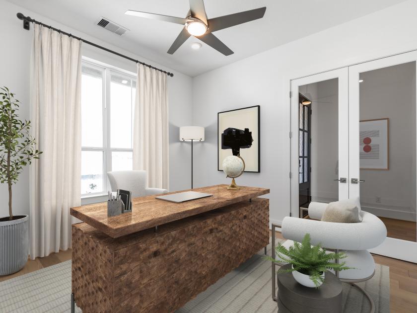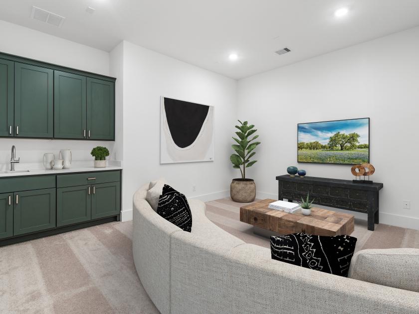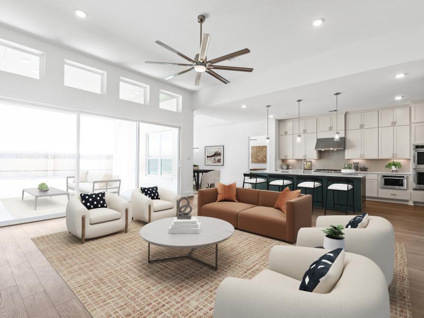 Truly an owner's delight, the Hennesey has a space for every moment. Enter along the lovely extended foyer hallway with tray ceiling past a bright, spacious office and a large media room. At the heart of the home, the expansive great room, elegant casual dining area with tray ceiling, and beautiful large covered patio create an ideal space for entertaining. The well-designed kitchen offers a large center island with breakfast bar, plenty of counter and cabinet space, an ample walk-in pantry, and a convenient workspace. Highlighting the palatial primary bedroom suite are an impressive tray ceiling, an impressive walk-in closet, and a spa-like primary bath with dual vanities, a large soaking tub, a luxe shower, linen storage, and a private water closet. Secondary bedrooms, one with private bath and two with shared bath with separate vanity areas, feature walk-in closets. Additional highlights include a generous flex room, a convenient powder room, and an everyday entry.