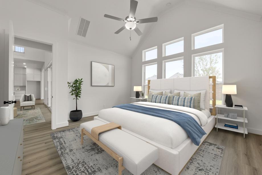 The Hart leaves an impression at every turn, from its expansive two-story foyer with elegant circular staircase to its grand two-story great room with desirable covered patio beyond. The well-appointed kitchen overlooks a bright casual dining area and is highlighted by a large center island with breakfast bar, plenty of counter and cabinet space, and ample walk-in pantry. The palatial primary bedroom suite is complete with a stunning cathedral ceiling, marvelous walk-in closet, and spa-like primary bath with dual vanities, large soaking tub, luxe shower, linen storage, and private water closet. The home’s generous second floor features a spacious loft and two secondary bedrooms, one with private bath and the other with a shared hall bath. Additional highlights include an additional first-floor bedroom suite with walk-in closet and private bath; a desirable office off the foyer; a convenient powder room and everyday entry; centrally located laundry; and additional storage.