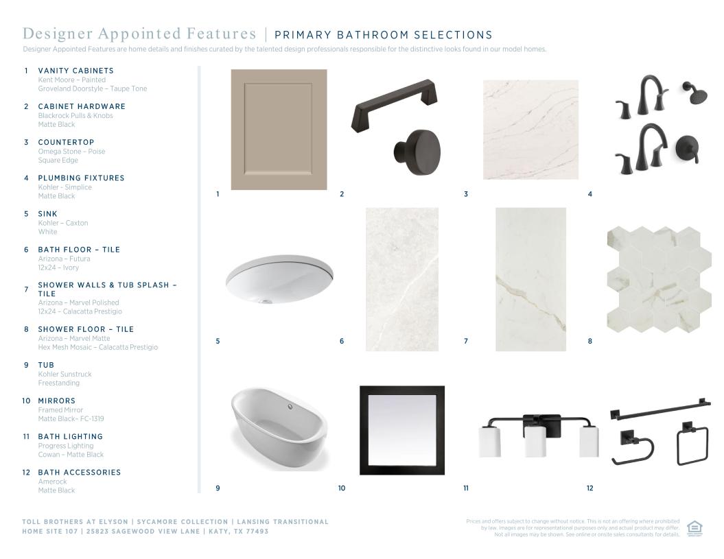 Toll Brothers Designer Appointed Collections are professionally curated selections of fixtures and finishes that come together to create a cohesive, distinctive look for a home. Learn More