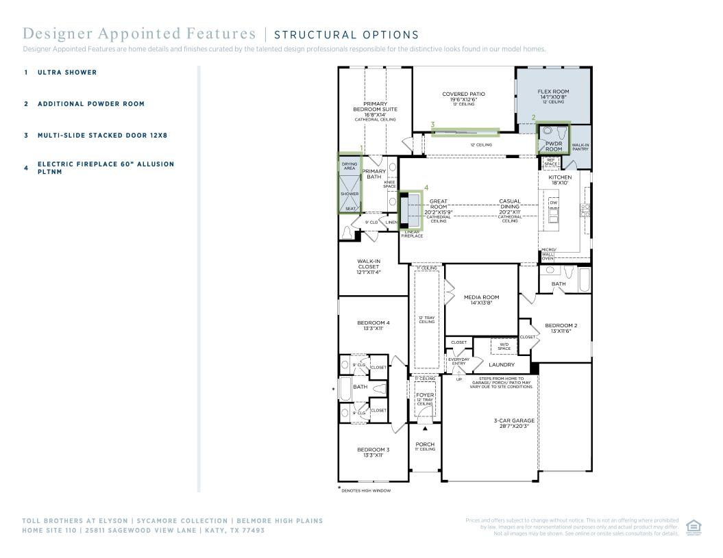 Beautifully styled luxe. The Belmore's inviting covered porch and impressive two-story foyer flow into the spacious great room and casual dining area, with views to the desirable patio beyond. The well-equipped gourmet kitchen is highlighted by a large center island with breakfast bar, plenty of counter and cabinet space, and roomy pantry. The charming primary bedroom suite is complete with an elegant tray ceiling, dual walk-in closets, and deluxe primary bath with dual-sink vanity, large soaking tub, luxe shower with seat, and private water closet. Central to a generous loft, secondary bedrooms feature walk-in closets, one with private bath, the other with shared hall bath. Additional highlights include a versatile office, convenient powder room and everyday entry, centrally located laundry, and additional storage.