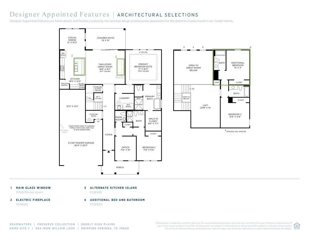 Wonderfully designed for comfort and luxury, the Eberly makes an instant impression with an extended foyer that opens onto a stunning two-story great room that offers direct access to a large covered patio. A casual dining area is central to the well-appointed kitchen that offers a walk-in pantry and a center island that makes entertaining easy. The desirable first-floor primary bedroom suite is enhanced by an elegant tray ceiling, a walk-in closet, and a pristine primary bath complete with a dual-sink vanity, free-standing tub, a luxe shower with seat, and a private water closet. Secluded off the foyer is a private office as well as a sizable secondary bedroom with a closet and a shared hall bath. On the second level, you'll find a generous loft that overlooks the great room and an additional bedroom with a large closet and a full hall bath. Also highlighted in the Eberly is an easily accessible laundry on the first floor, a powder room, an everyday entry, and plenty of storage throughout.