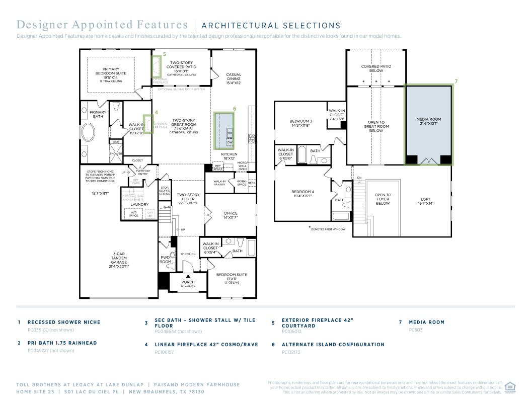 The Paisano’s elegant indoor and outdoor spaces are enhanced by dramatic architecture. A soaring two-story foyer sweeps past a secluded bedroom suite and office into a stunning two great room with a cathedral ceiling. Adjacent to a bright casual dining area, the kitchen is a chef’s delight featuring a spacious center island with breakfast bar, a workspace, a walk-in pantry, and plenty of cabinet space. Retreat to the relaxing primary bedroom, offering a tray ceiling, a large walk-in closet, and a tranquil bath boasting dual vanities, a luxe shower with seat, and a private water closet. The second floor reveals a versatile loft and secondary bedrooms. One secondary bedroom offers a walk-closet and a private bath, and the other features a walk-in closet and a shared hall bath. Additional highlights include an inviting two-story covered patio perfect for entertaining, an everyday entry, a first-floor powder room and laundry space, 3-car tandem garage and plentiful storage.