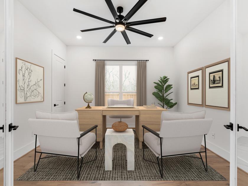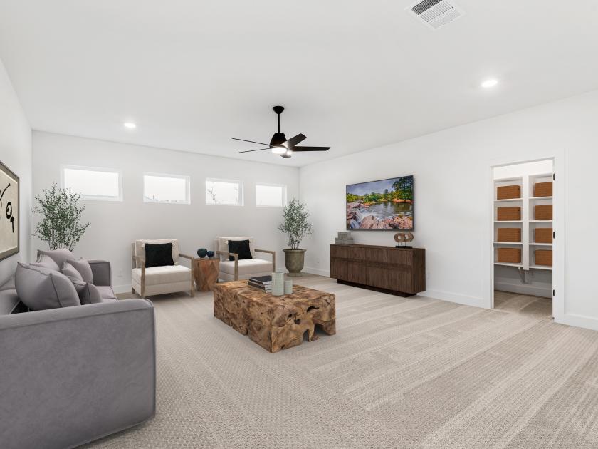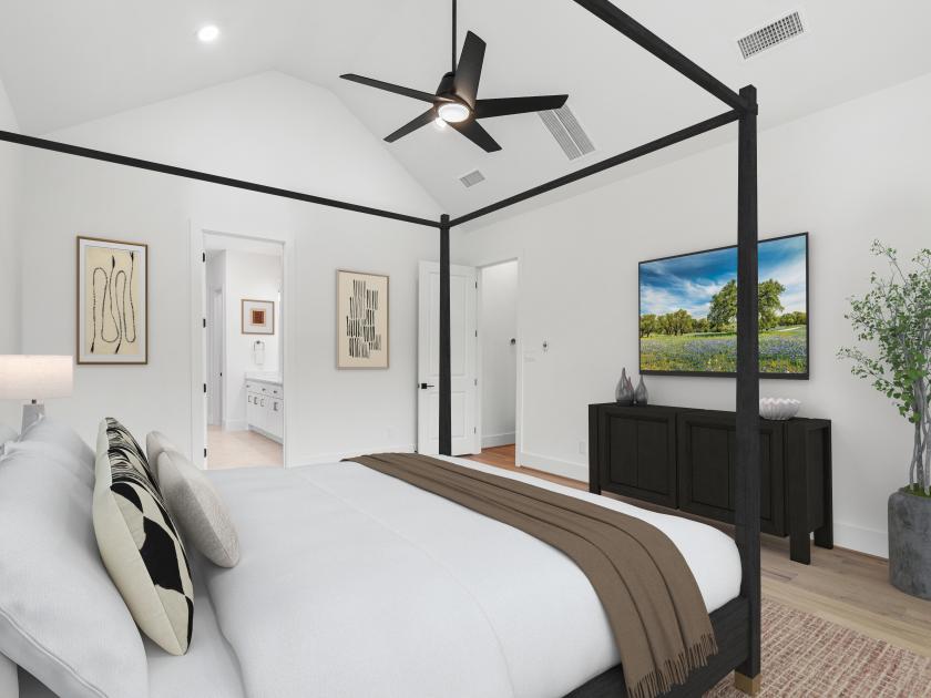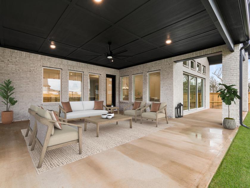 The Lancia's spacious two-story foyer flows past a spacious secondary bedroom suite and bright office and into the expansive great room and casual dining area. With views into the desirable large covered patio, the well-designed kitchen is enhanced by a large center island with breakfast bar, plenty of counter and cabinet space, and a roomy walk-in pantry. A beautiful cathedral ceiling and impressive walk-in closet are highlights of the elegant primary bedroom suite, adjacent to the magnificent primary bath with dual-sink vanity, a large soaking tub, a luxe shower, and a private water closet. The secluded secondary bedroom features a walk-in closet and private bath. Additional highlights include a convenient powder room, an everyday entry, a centrally located laundry, and additional storage.