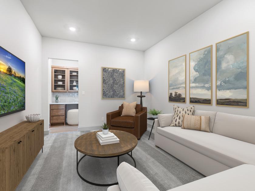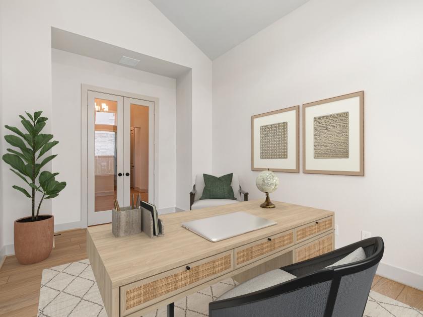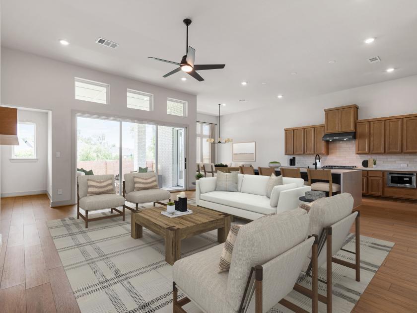 The Indio’s distinctive extended foyer hallway with tray ceilings flows into the expansive great room and views to the desirable covered patio beyond. The beautifully designed kitchen features an oversized center island with a breakfast bar, a large walk-in pantry, and ample counter and cabinet space. The casual dining area opens to the spacious covered patio and rear yard. A cathedral ceiling and palatial walk-in closet adorn the magnificent primary bedroom suite, along with a splendid primary bath with dual vanities, a large soaking tub, a luxe shower, linen storage, and a private water closet. Three additional bedrooms, one with a private bath and two with a shared hall bath, all feature sizable closets. Additional highlights include a generously sized office with a cathedral ceiling, a large media room, a convenient everyday entry off the garage, a centrally located laundry, and additional storage.
