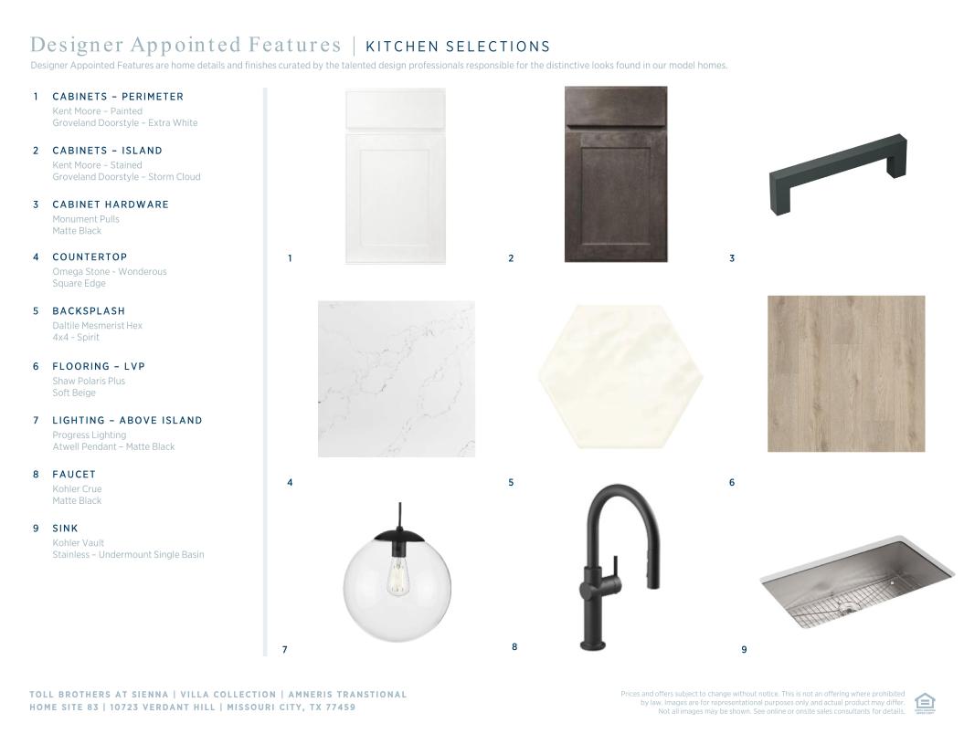 Toll Brothers Designer Appointed Collections are professionally curated selections of fixtures and finishes that come together to create a cohesive, distinctive look for a home. Learn More