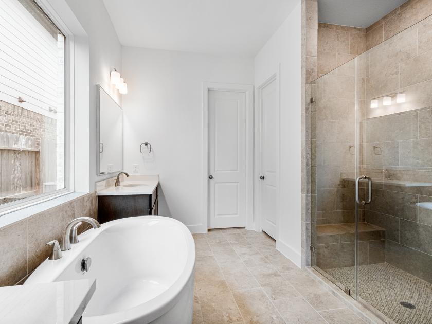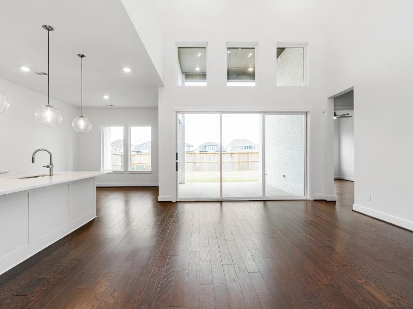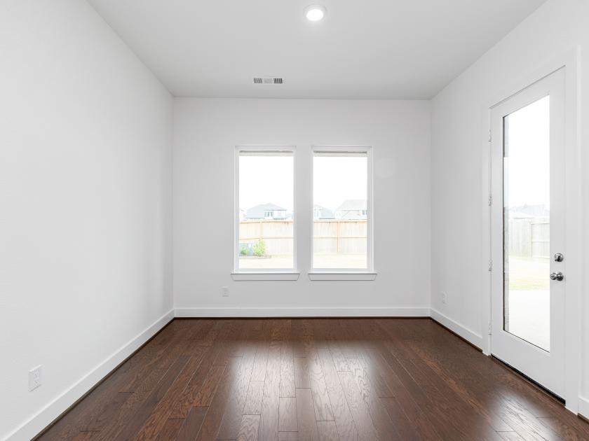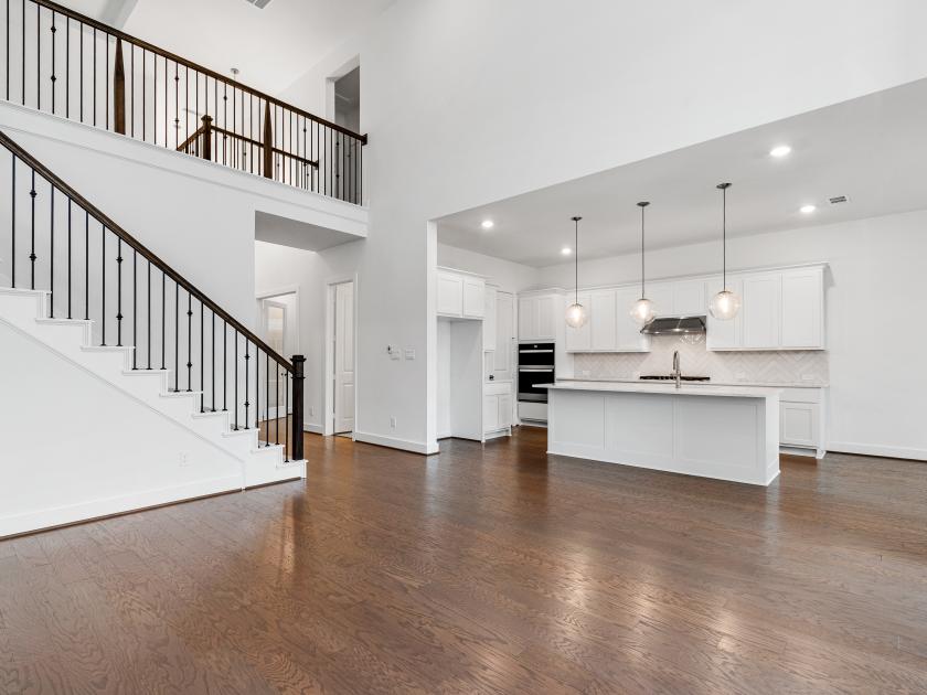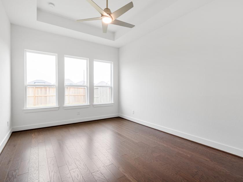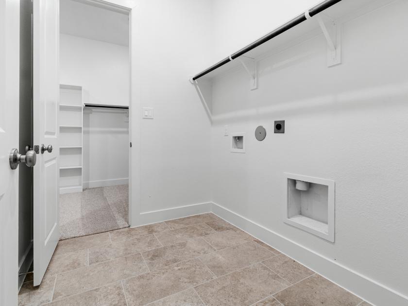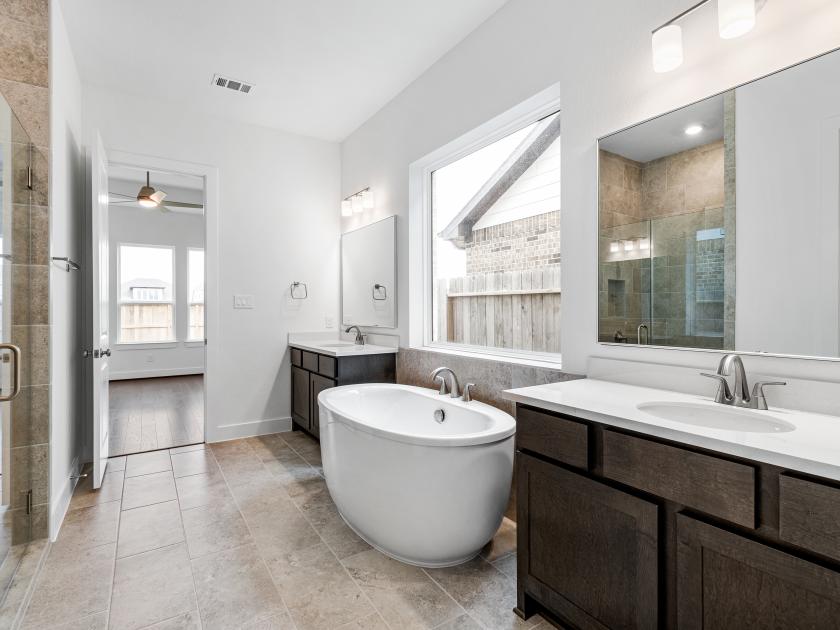 The soaring two-story foyer of the Bautista makes an immediate impression as it extends into the expansive two-story great room with access to the rear covered patio and views of a intimate casual dining area. A large center island with breakfast bar defines the well-appointed kitchen, offering plenty of counter and cabinet space as well as an ample walk-in pantry. The charming primary bedroom suite is highlighted by a gorgeous tray ceiling, generous walk-in closet, and a beautiful primary bath complete with dual vanities, large soaking tub, deluxe shower, and a private water closet. The secondary bedroom is conveniently located off the foyer, featuring a walk-in closet and a shared hall bath. Secluded on the second floor, an additional bedroom with a walk-in closet and shared hall bath overlooks a spacious loft with tray ceiling. Additional highlights include a large flex room on the first floor, centrally located laundry, convenient everyday entry, and ample additional storage.