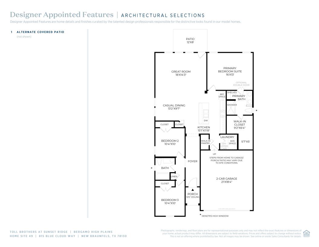 Featuring an alluring blend of modern architecture and elegant accents, the Bergamo is perfectly crafted to complement every lifestyle. A welcoming entry offers views of the expansive great room and desirable patio beyond. Overlooking a spacious casual dining area, the well-designed kitchen is defined by a large center island with breakfast bar, plenty of counter and cabinet space, and a roomy walk-in pantry. Tucked away off the great room, the superb primary bedroom suite features a sizable walk-in closet and a spa-like primary bath complete with dual-sink vanity and a large shower. The large secondary bedrooms are secluded off the foyer, offering sizable closets and a shared hall bath, as the Bergamo also includes easily accessible laundry and plenty of additional storage.