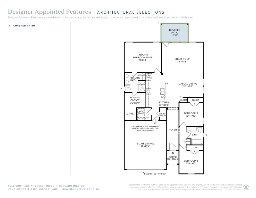 Featuring an alluring blend of modern architecture and elegant accents, the Bergamo is perfectly crafted to complement every lifestyle. A welcoming entry offers views of the expansive great room and desirable patio beyond. Overlooking a spacious casual dining area, the well-designed kitchen is defined by a large center island with breakfast bar, plenty of counter and cabinet space, and a roomy walk-in pantry. Tucked away off the great room, the superb primary bedroom suite features a sizable walk-in closet and a spa-like primary bath complete with dual-sink vanity and a large shower. The large secondary bedrooms are secluded off the foyer, offering sizable closets and a shared hall bath, as the Bergamo also includes easily accessible laundry and plenty of additional storage.
