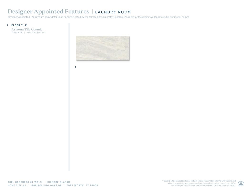 Toll Brothers Designer Appointed Collections are professionally curated selections of fixtures and finishes that come together to create a cohesive, distinctive look for a home. Learn More