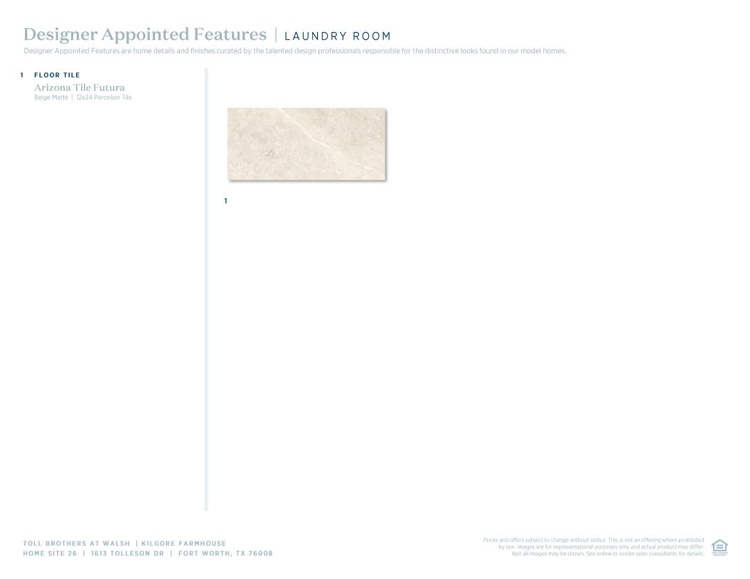 Toll Brothers Designer Appointed Collections are professionally curated selections of fixtures and finishes that come together to create a cohesive, distinctive look for a home. Learn More