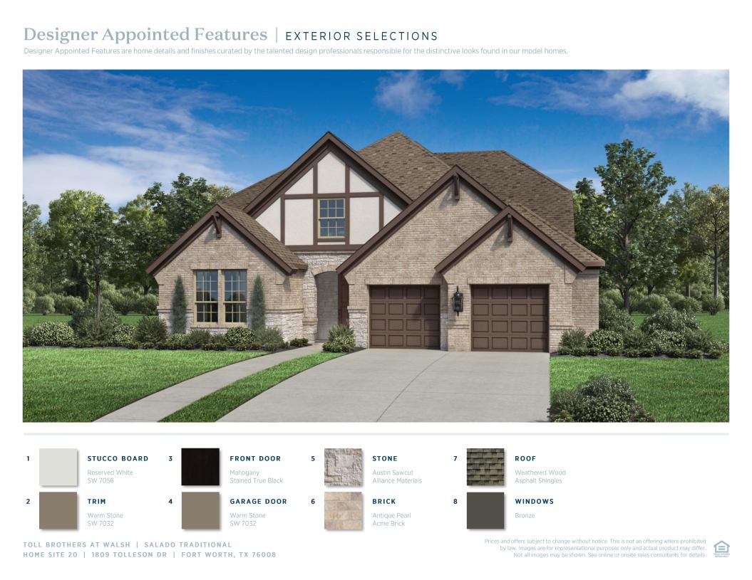 The Salado's inviting porch and extended foyer with tray ceiling reveal the expansive great room and casual dining area, with views to the desirable covered patio beyond. The well-appointed kitchen is complete with a large center island with breakfast bar, plenty of counter and cabinet space, and huge walk-in pantry. The serene primary bedroom suite is highlighted by a graceful tray ceiling, gigantic walk-in closet, and deluxe primary bath with dual vanities, large soaking tub, luxe shower, linen storage, and private water closet. Central to a generous loft, secondary bedrooms feature sizable closets and shared hall bath with dual separate vanity areas. Additional highlights include a bedroom suite with closet and private bath off the foyer, spacious office, convenient powder room and everyday entry, centrally located laundry, and additional storage.