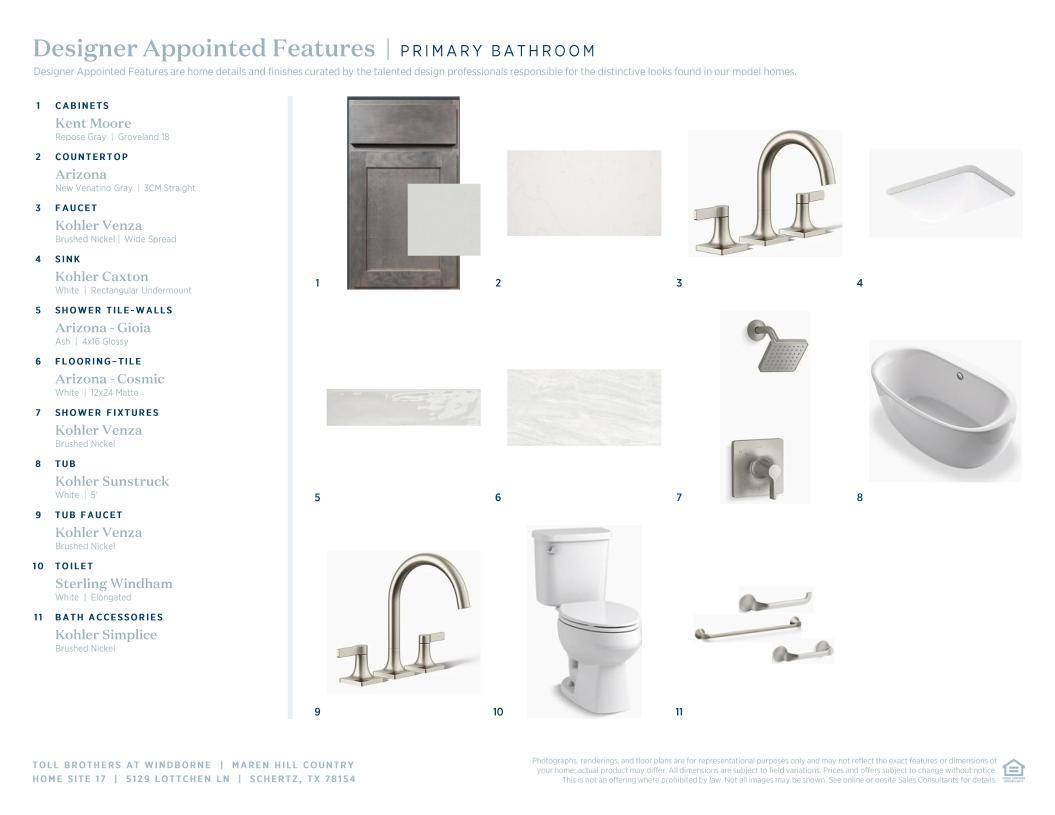 Toll Brothers Designer Appointed Collections are professionally curated selections of fixtures and finishes that come together to create a cohesive, distinctive look for a home. Learn More