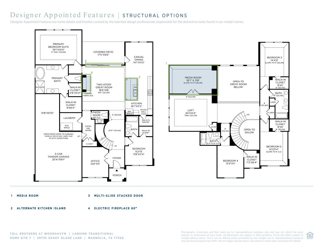 The Lansing leaves an impression at every turn, from its expansive two-story foyer with elegant circular staircase to its grand two-story great room with desirable covered patio beyond. A secluded home office and private bedroom suite are set at the front of the home. Beyond the entry the home opens to the great room and well-designed kitchen overlooking a bright casual dining area, and large center island with breakfast bar and plenty of counter and cabinet space, and sizable walk-in pantry. The primary bedroom suite is enhanced by a gorgeous tray ceiling, dual walk-in closets, and marvelous primary bath with dual vanities, large soaking tub, luxe shower, and private water closet. Upstairs, a spacious loft connects to three additional secondary bedrooms, one with private bath and two with shared hall bath with dual-sink vanity, and each featuring walk-in closets. Additional highlights include a convenient powder room and everyday entry; centrally located laundry; and additional storage