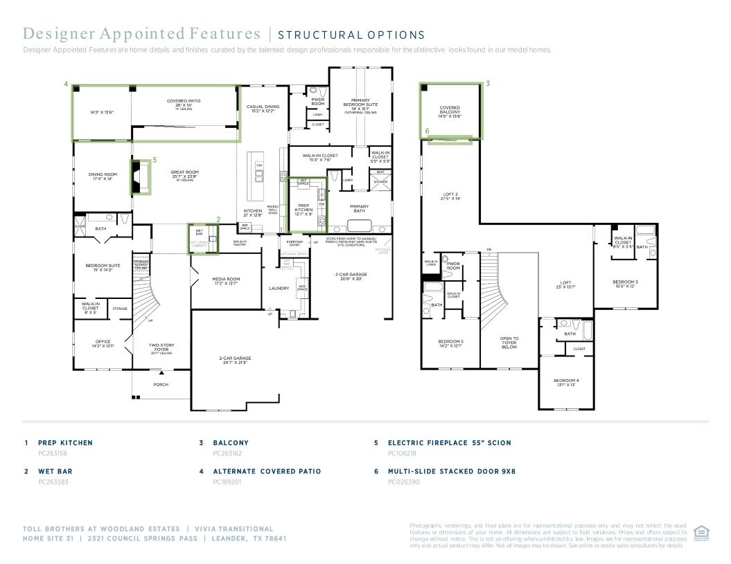 Featuring ample space for entertaining and relaxing, the Vivia offers exceptional two-story living. An expansive foyer flows past a spacious media room and into the impressive great room with alluring views of the covered patio, adjacent dining room, and a bright casual dining area. Enhancing the well-equipped kitchen is a large center island with breakfast bar, plenty of counter and cabinet space, and a generous walk-in pantry. Tucked away off the main living space, the palatial primary bedroom suite features dual walk-in closets and a superb primary bath complete with dual vanities, a large soaking tub, a luxe shower with seat, linen storage, and a private water closet. Overlooking two sizable lofts on the second floor, the secondary bedrooms offer walk-in closets and private baths. An additional first-floor bedroom suite can be found off the foyer, and offers a walk-in closet and a private bath. The Vivia also features an ample office, a secluded flex room off the everyday entry, easily accessible laundry, powder rooms on both floors, and ample additional storage.