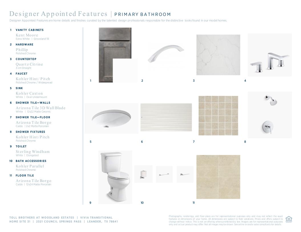 Toll Brothers Designer Appointed Collections are professionally curated selections of fixtures and finishes that come together to create a cohesive, distinctive look for a home. Learn More