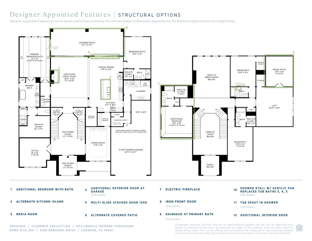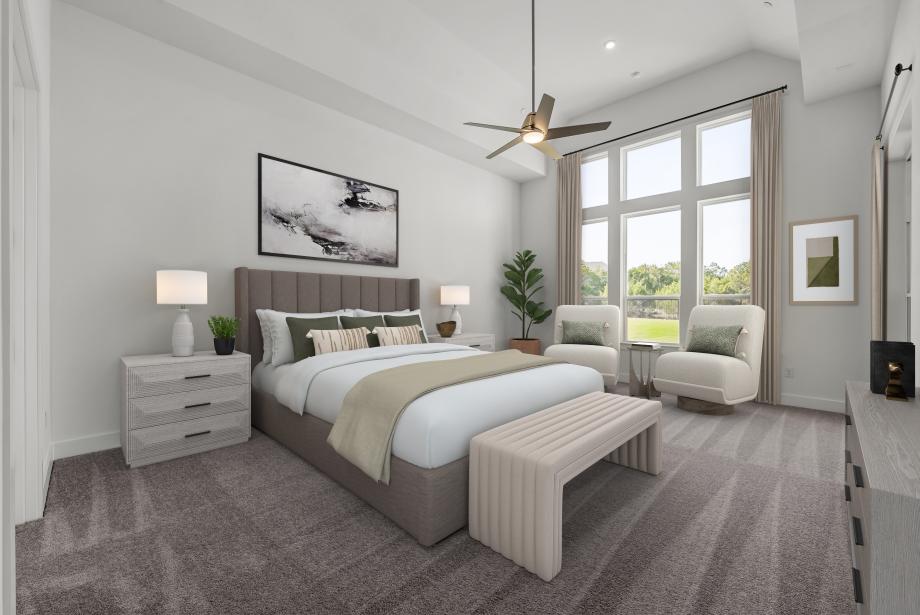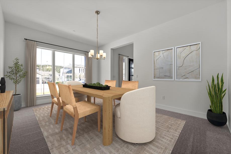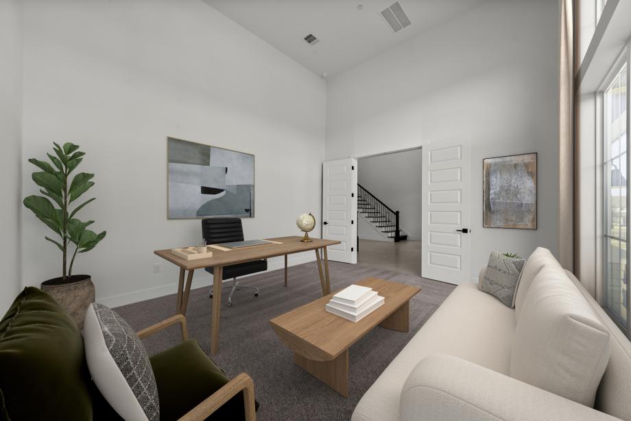 The Rollinghill showcases elegance with an impressive foyer that flows past the beautiful formal dining room, revealing flanking dual stairways that perfectly frame the spacious great room and a view to the extensive covered patio beyond. Central to an airy casual dining area, the expertly crafted kitchen features plenty of counter and cabinet space, a gorgeous center island with accompanying breakfast bar, a sizable walk-in pantry, and a butler pantry that connects to the dining room. Tucked away off the great room, the palatial primary bedroom suite is highlighted by an expansive walk-in closet and tranquil primary bath with dual vanities, large soaking tub, luxurious shower with seat and drying area, and a private water closet. Secondary bedrooms, one with a private bath and one with a shared hall bath, feature walk-in closets and overlook a spacious loft. Additionally featured in the Rollinghill is a desirable first-floor bedroom suite with walk-in closet and private bath, a private office off the foyer, convenient powder room and everyday entry, centrally located first-floor laundry, and additional storage.