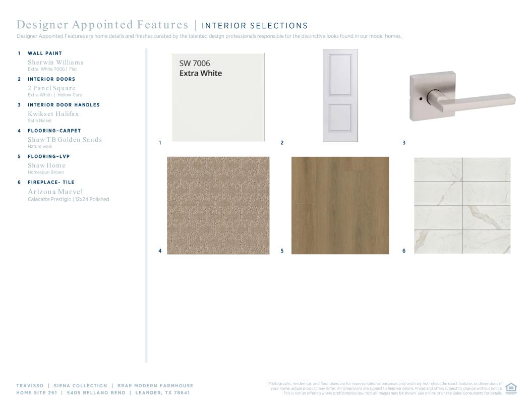 The perfect balance of lovely living spaces and quiet corners, the Brae is breathtaking. A soaring two-story foyer and hallway reveal the Brae's impressive two-story great room with covered patio, overlooked by the well-appointed kitchen offering a bright casual dining area, large center island with breakfast bar, plenty of counter and cabinet space, and sizable pantry. The secluded primary bedroom suite is complete with an ample walk-in closet and spa-like primary bath with a dual-sink vanity, a large soaking tub, a luxe shower with seat, linen storage, and a private water closet. Secondary bedrooms feature large closets and private baths, and are central to a generous loft with tray ceiling. Additional highlights include a versatile first-floor bedroom with closet and private bath, a spacious office, a centrally located laundry, a convenient powder room and everyday entry, and additional storage throughout.
