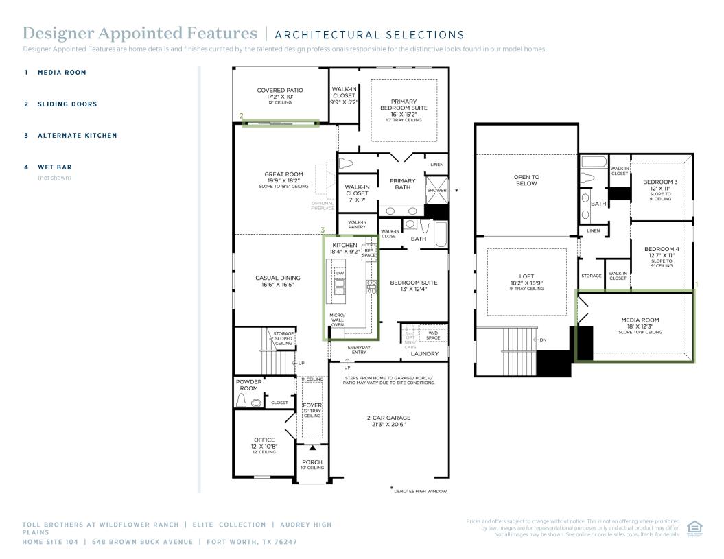 Versatile living space meets elegant design in the Audrey. Enter through the foyer hallway with tray ceiling to discover the kitchen, casual dining area, and spacious great room with views onto the desirable rear covered patio. The kitchen features a large center island with breakfast bar, plenty of counter and cabinet space, and an ample walk-in pantry. Enhancing the secluded primary bedroom suite are a stunning tray ceiling, dual walk-in closets, and an elegant primary bath with dual-sink vanity, large luxe shower, linen storage, and private water closet. Secondary bedrooms are adjacent to a generous loft with tray ceiling and feature walk-in closets with shared hall bath with separate dual-sink vanity area. Additional highlights include a desirable first-floor bedroom suite with walk-in closet and private bath; a roomy office off the foyer; a convenient powder room; an everyday entry; centrally located laundry; and additional storage.