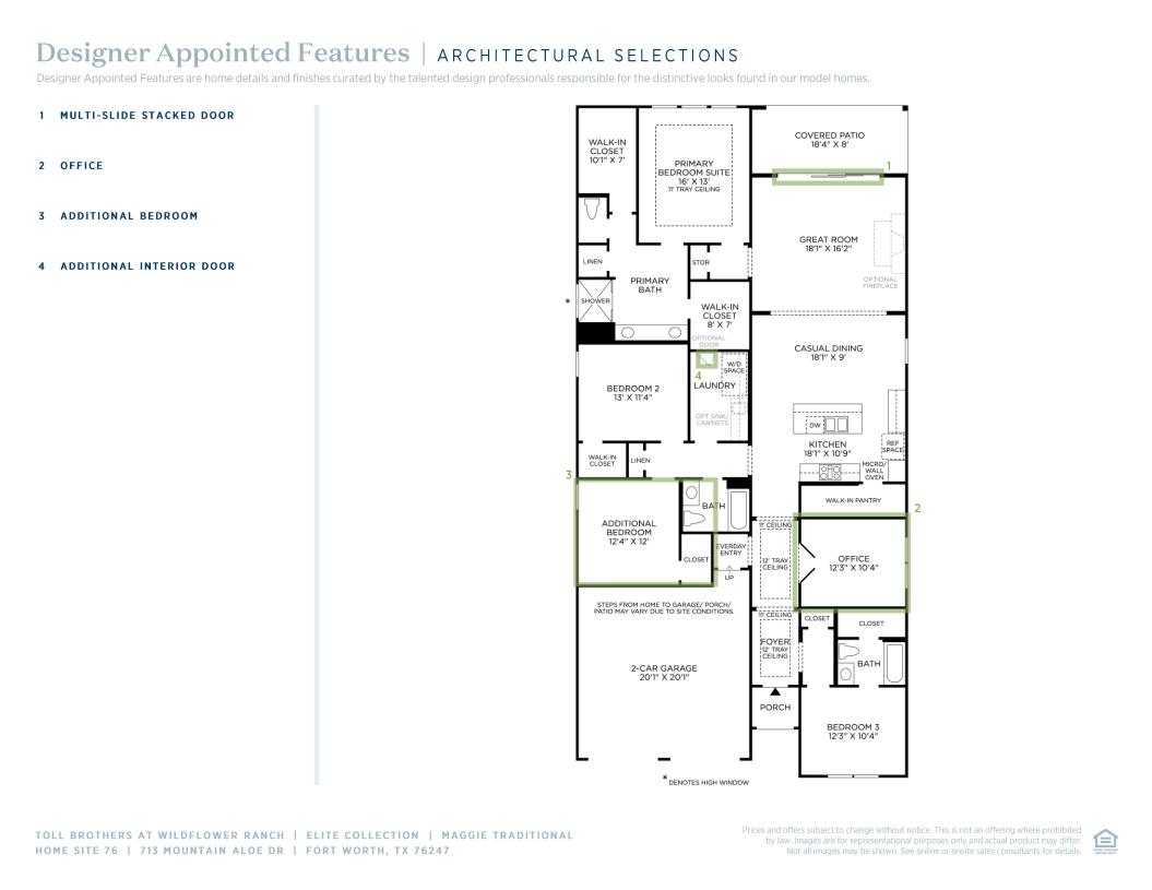 The Maggie leaves an impression at every turn, starting with a lovely extended foyer with tray ceilings flowing past the beautiful formal dining room. The spacious great room and casual dining area overlook a desirable rear covered patio. Enhancing the well-appointed kitchen are a large center island with breakfast bar, plenty of counter and cabinet space, and generous walk-in pantry. The stunning primary bedroom suite is complete with a tray ceiling, dual walk-in closets, and luxurious primary bath with dual-sink vanity, luxe shower, linen storage, and private water closet. Secondary bedrooms feature ample closets, one with private bath, the other with shared hall bath. Additional highlights include a convenient everyday entry, centrally located laundry, and additional storage.